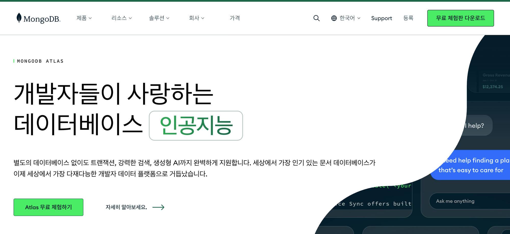 몽고 DB는 전 세계 개발자들이 사용하는 데이터베이스 회사입니다. 전 세계 100개국 이상에서 수만 명의 고객이 몽고 DB를 사용하고 있고, 수억 번이 넘게 다운로드 되었습니다.
