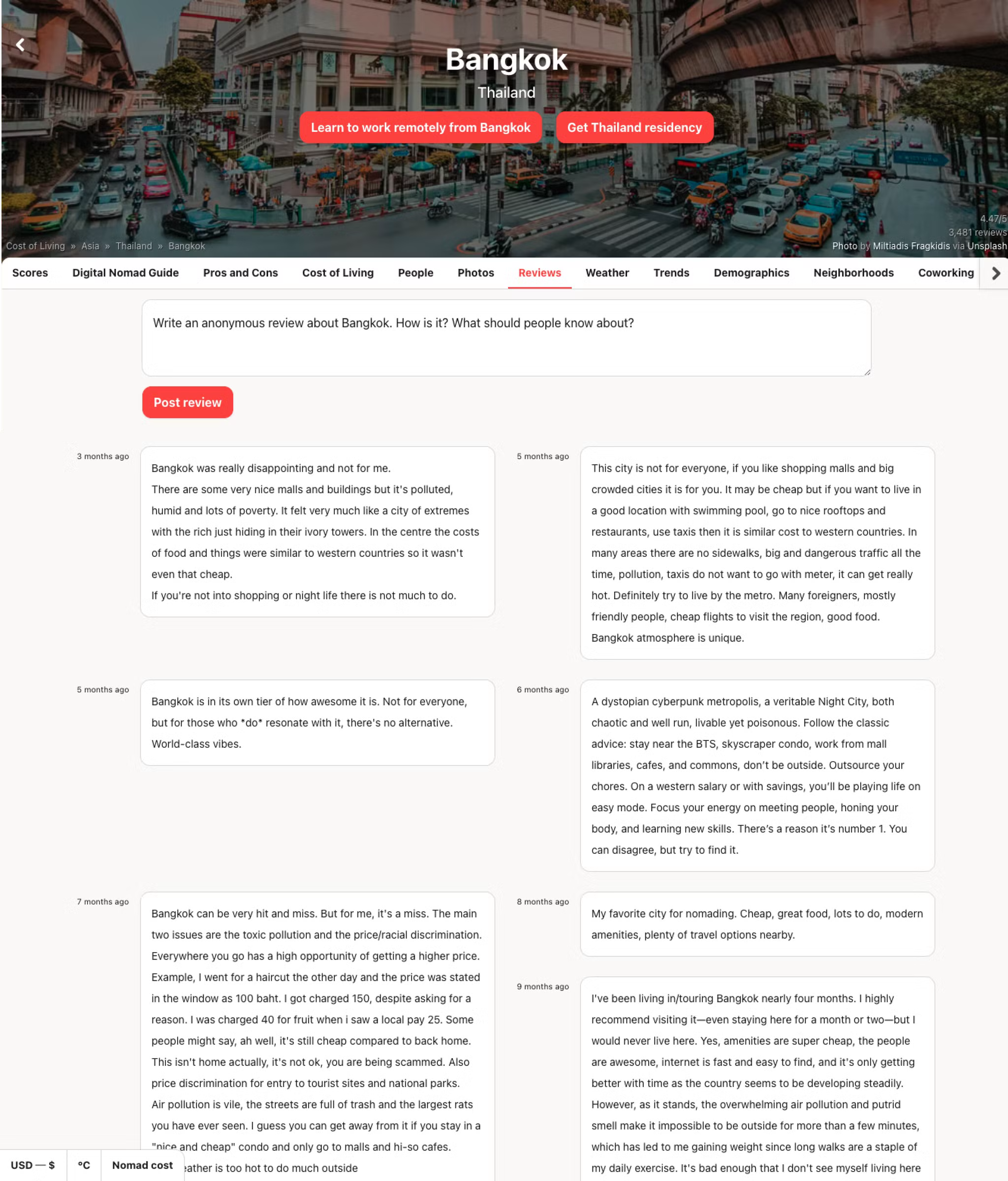 -Nomad List : 여행자들의 리뷰를 AI가 요약해 장단점을 한 페이지로 정리