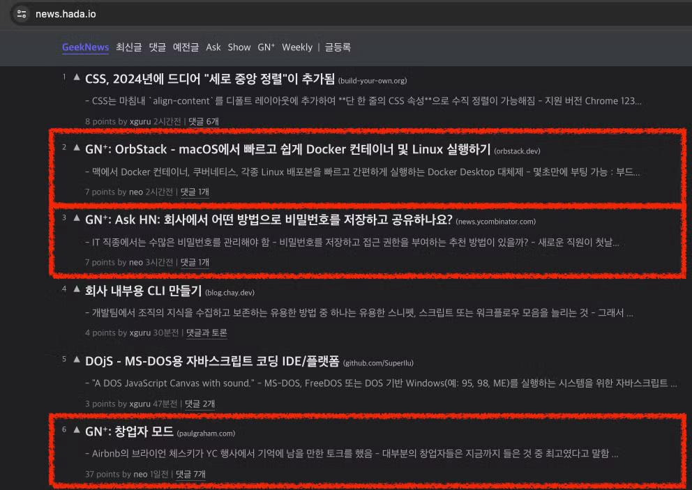 - 상황 : Geeknews의 운영진이나 사용자들이 흥미로운 기술 뉴스를 발견하면, 내용을 정리해서 웹사이트에 등록했습니다.