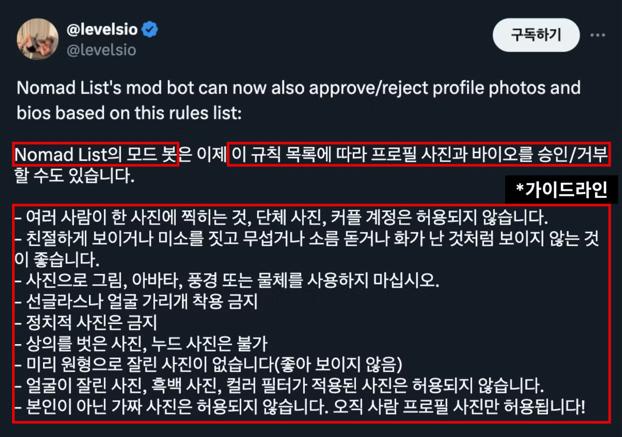 -Nomad List : 프로필 사진을 AI가 검수한 뒤, 가이드라인에 위반되면 제지