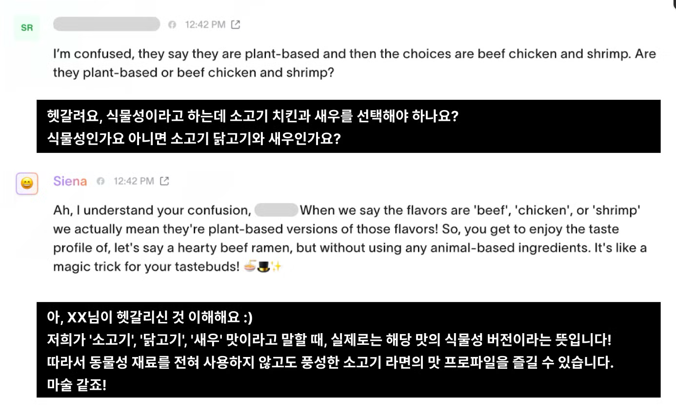 - 기존 상황 : 회사가 급성장 하면서 고객 문의도 정말 많아졌어요. 문의를 남기고 24시간 이상 기다리는 고객들이 많아졌죠. 더 많은 CS팀원을 채용하기 보다 챗봇으로 고객 문의에 대응하고 싶었습니다. 친근한 이미지의 브랜드였기에 로봇 같이 딱딱한 말투로 대답하는 챗봇은 아니여야 했습니다.
