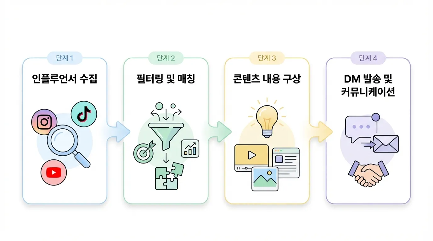 수집된 인플루언서는 단순히 목록에 머물지 않습니다.