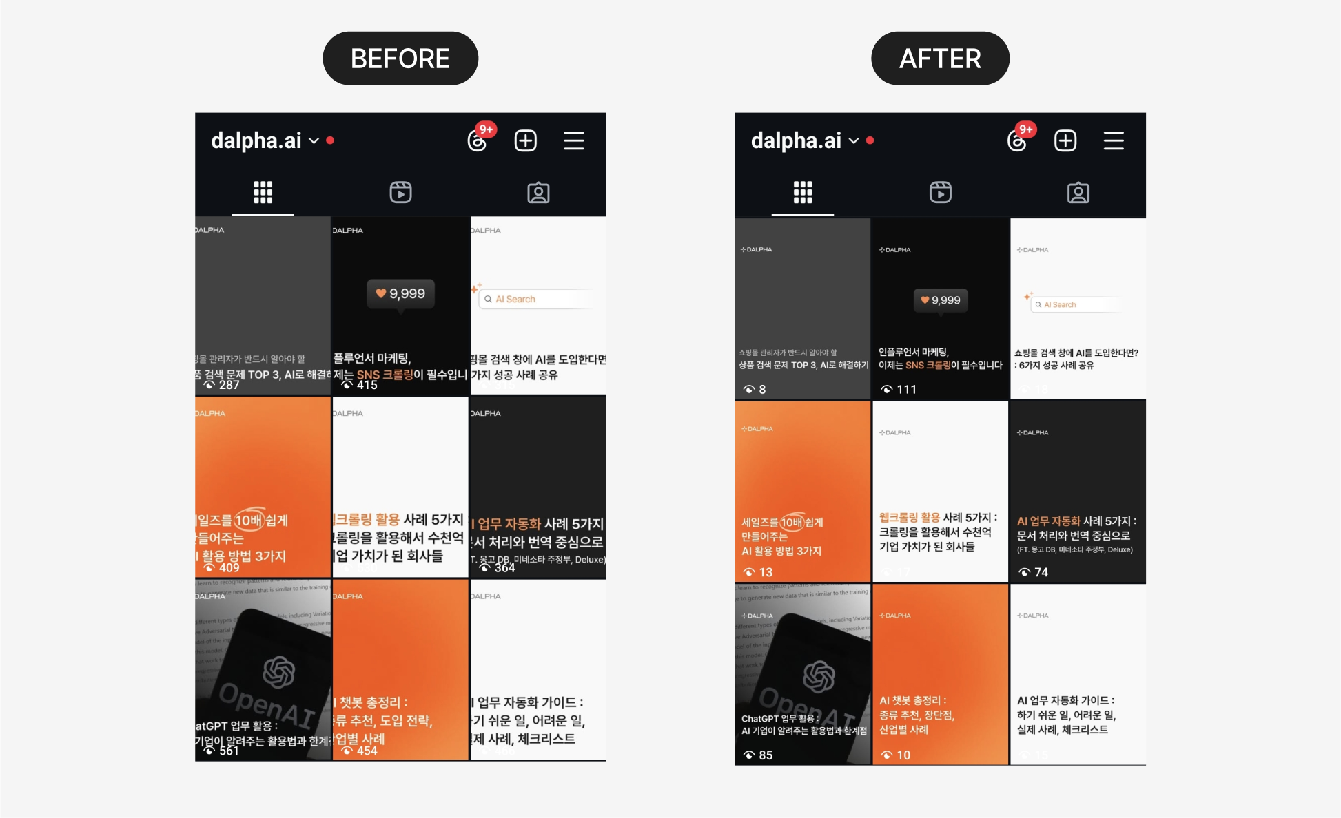 - 저희 인스타그램도 예외가 아니었는데요! 😭 지금은 아래 이미지처럼 해결되었습니다.
