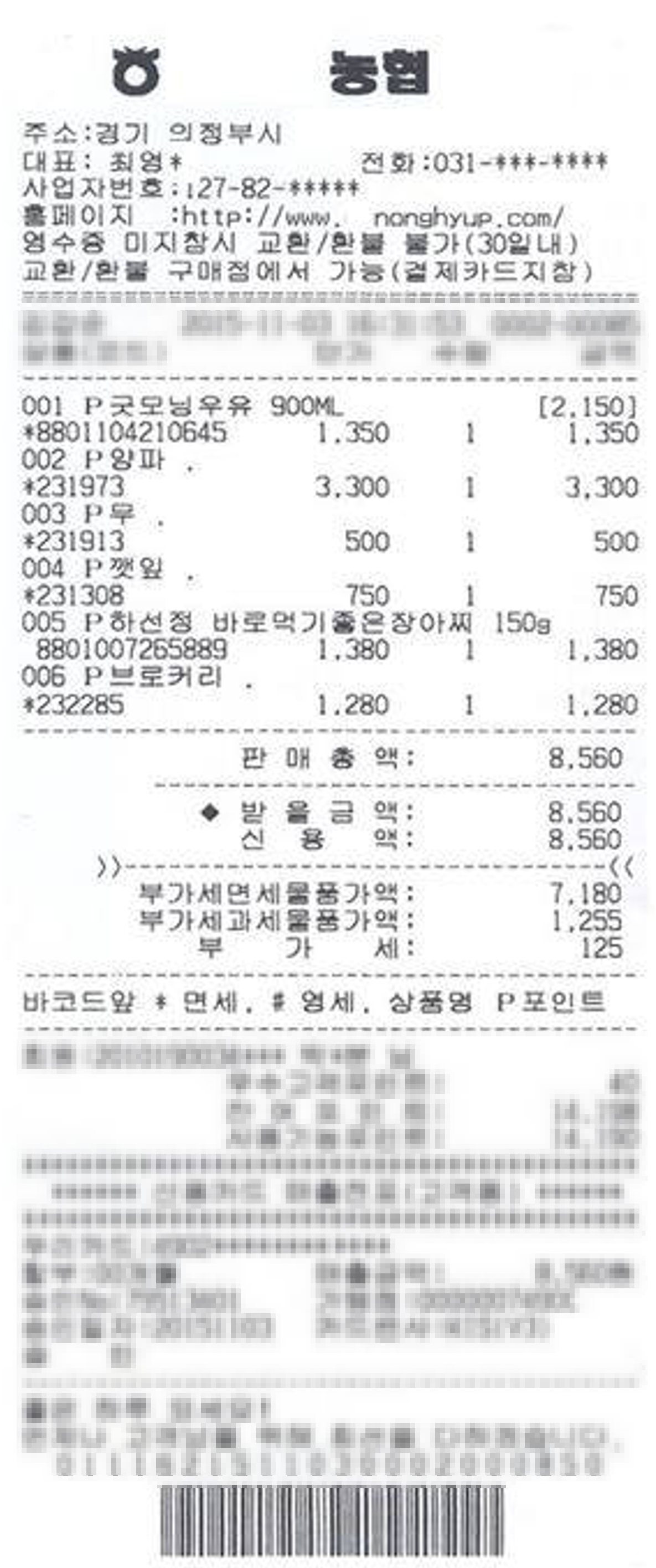 OCR 성능을 비교하기 위해, 영수증을 넣고 정보를 추출하는 작업을 비교해 보았습니다.