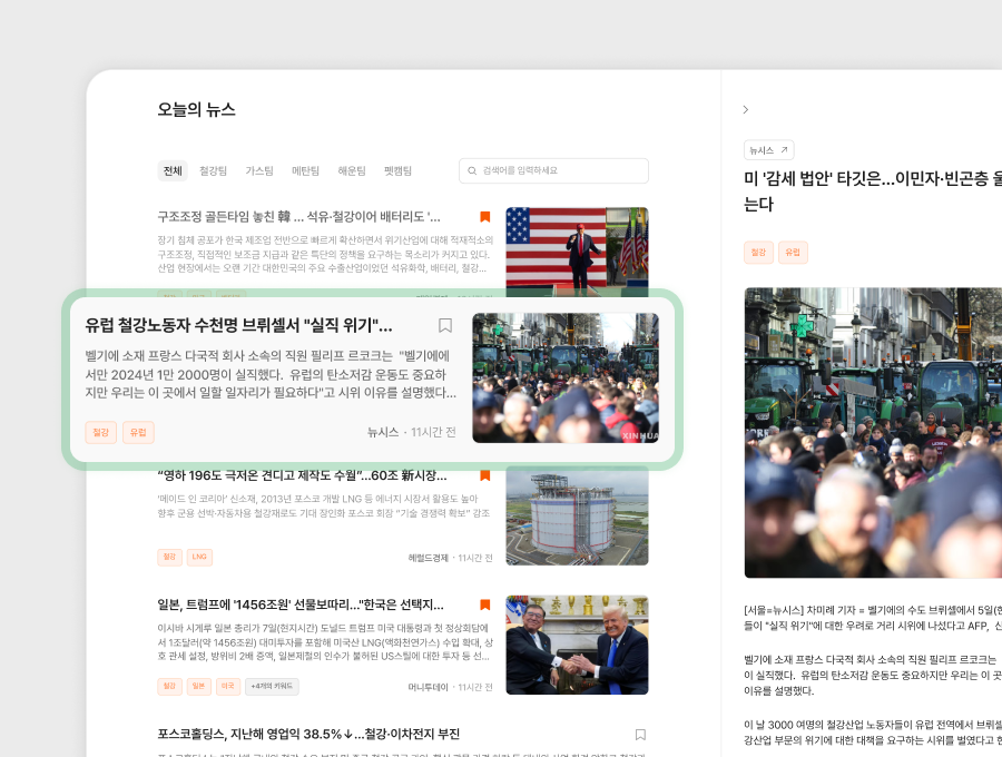→ 많은 뉴스를 다 볼 필요 없이 실무자가 바로 집중해야 할 뉴스를 한눈에 확인할 수 있습니다.