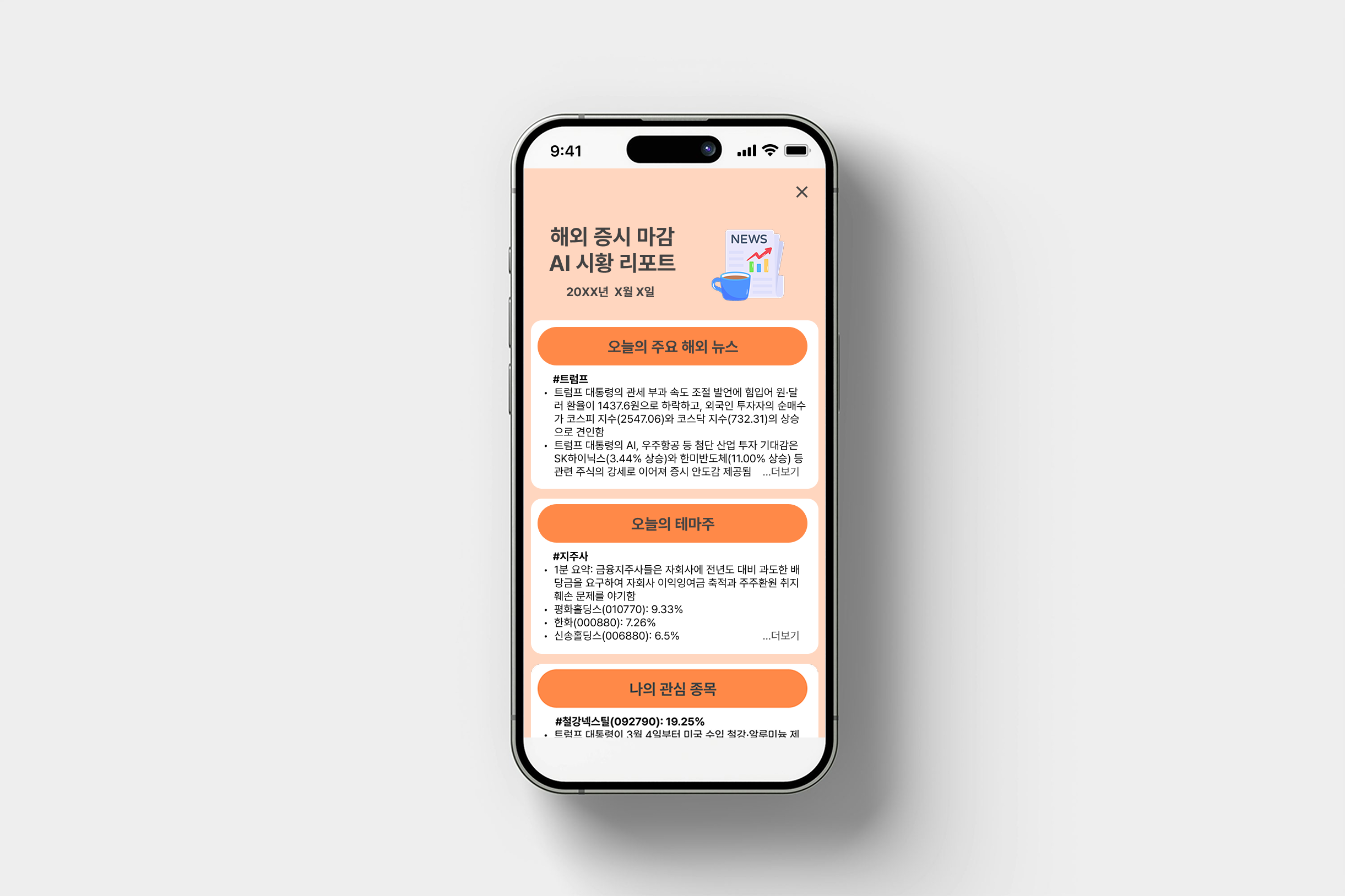 - 투자자들은 주식 장이 열리기 전·후에 종합적인 시황 정보를 빠르게 확인하고 싶어 합니다.