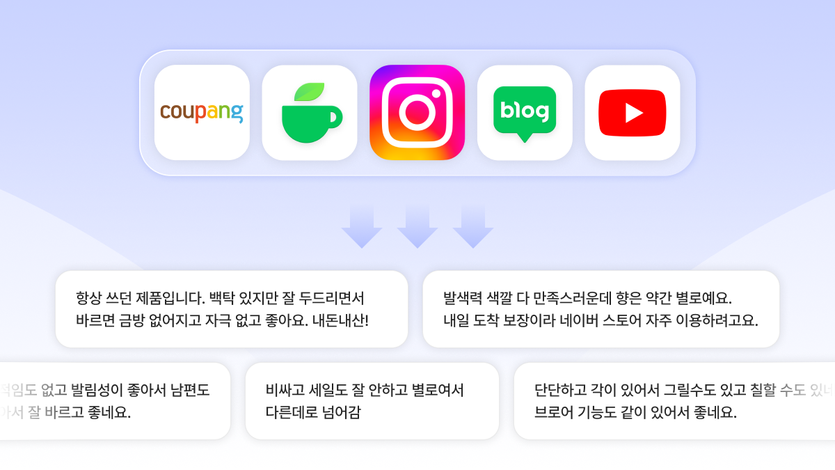 쿠팡 후기, 인스타 포스팅, 네이버 블로그 등 수천 건의 글 속에 진짜 고객의 목소리는 숨어 있기 때문이죠.