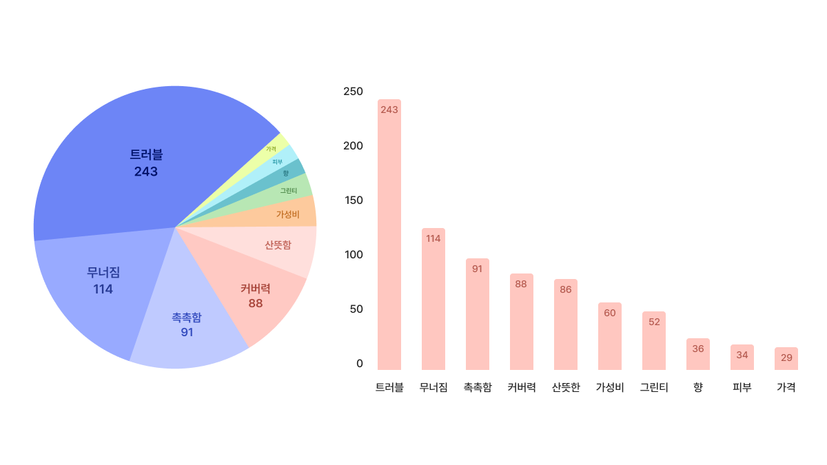 - 둘째, 가격, 제형, 보습력 부분에서 부정적인 반응이 많은 걸 알 수 있습니다.