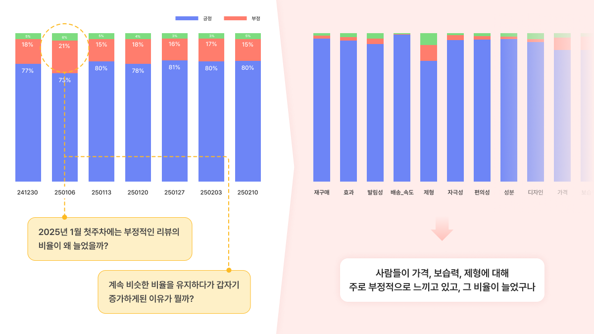 - 데이터 기반의 객관적인 제품 개선 방향과 마케팅 액션 포인트를 도출할 수 있습니다.