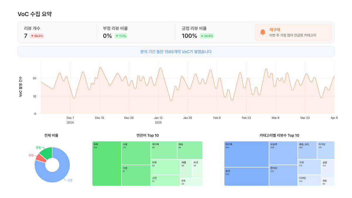- 브랜드 담당자가 고객 후기를 직접 검색하지 않아도 되고, 진짜 반응만 모아 제품 전략을 세울 수 있습니다.