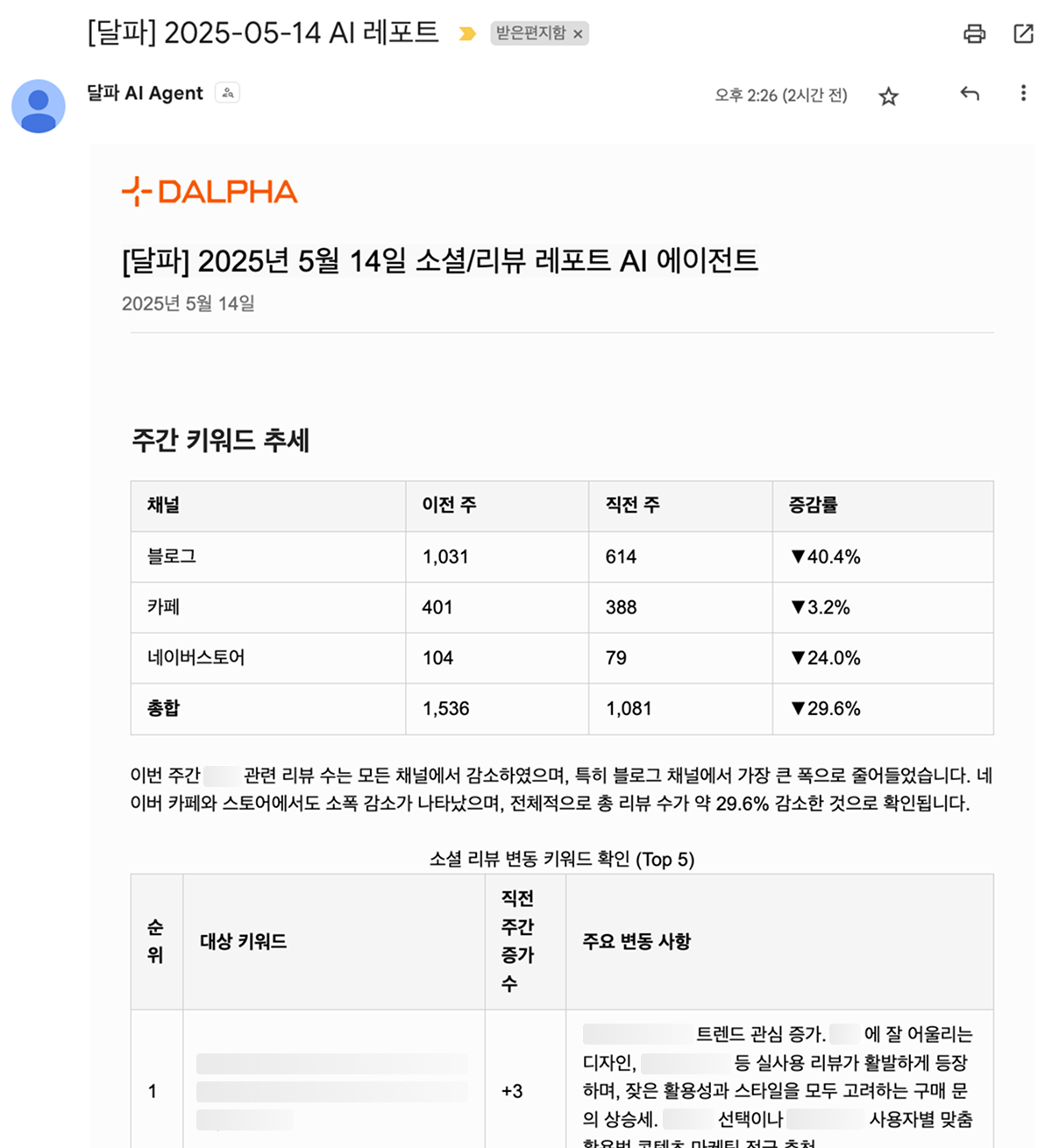 달파의 소셜/리뷰 분석 AI는 이 두 가지를 모두 충족합니다.